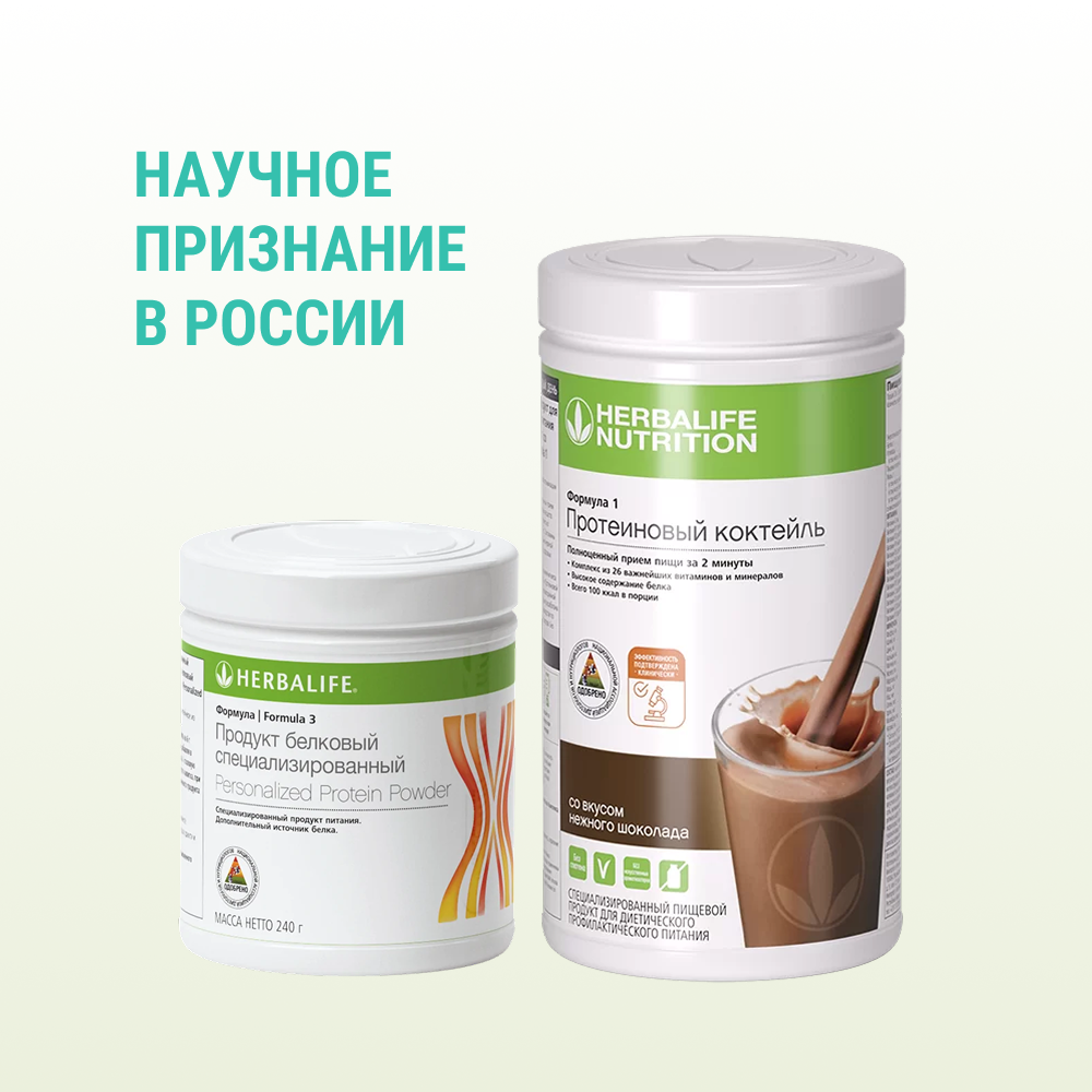 *Долгосрочные клинические испытания с участием 90 человек и продолжительностью 6 месяцев «Оценка клинической эффективности и переносимости диет, содержащих высокобелковые заменители пищи и применяемых для редукции массы тела у лицс ожирением и избытком массы тела. Рандомизированное контролируемое клиническое исследование Программы коррекции массы тела Herbalife®». Июнь 2011, НИИ питания РАМН, Москва.В программе использовались специализированные продукты питания Протеиновый коктейль Формула 1и Протеиновая смесь Формула 3.